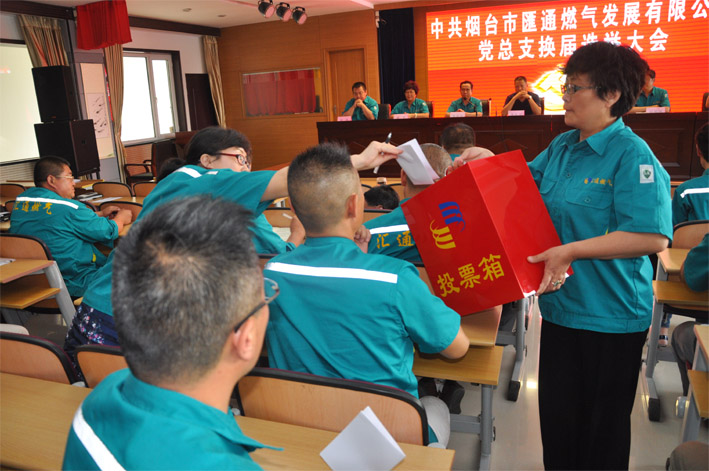 根据《中国共产党党章》和《中国共产党基层组织选举工作暂行条例》的相关规定,汇通公司党总支于2015年6月24日下午召开党员大会,进行了中共烟台市汇通燃气发展有限公司总支委员会的换届选举工作。会议由工会赵国强主席主持,季道远董事长、曹玉亭书记等28名党员参加了此次大会。