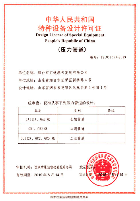 经过公司上下全体员工的共同努力,我公司成功的通过了国家质量监督检验检疫总局对我公司压力管道设计资质的审查。