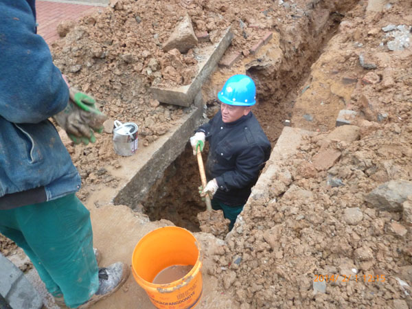 1月30日(除夕)晚上6:30时左右,珠玑气化站管道液化天然气供气小区地下管线(气化站自南向北50余米处)发生了泄漏,公司启动了“应急预案”,总经理助理王志利根据总经理曹玉亭指令,组织由工程抢险分公司、管道供气分公司、设备安装工程公司、安装二公司、安全部、设备部、综合办、采运分公司、区域安全督察组成的抢险队展开紧急抢险任务。经过40个小时的抢险作业,安全圆满地完成任务,恢复供气,保障了小区的安全。抢险期间,我公司季道远董事长、曹玉亭总经理等领导在现场进行安全监护,上级部门市城管局田局长、刘总工,市安监局监察支队王支队长、彭大队长、督导员张政伟,市供热燃气处胡平处长、李志强副处长、刘杰处长助理、王斌科长、督导员杨副科长等领导也到现场指导抢险作业。