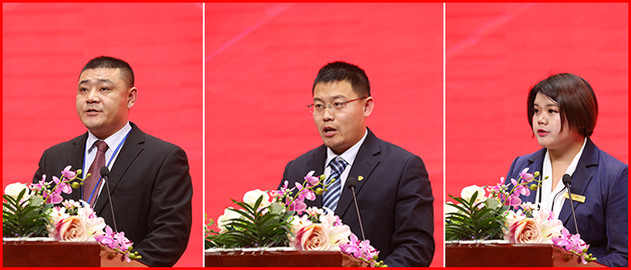 最后,由烟台市汇通燃气发展有限公司莱山一公司经理林召亮、山东黑尚莓生物技术发展有限公司生产管理中心经理苑伟、烟台尚美爱琴海婚庆主题酒店有限公司餐饮部经理周小敏作为员工代表及烟台市汇通燃气发展有限公司衡水分公司执行总经理胡晓东作为党员代表(视频发言),就如何更好的完成大会部署的2018年各项经济和工作目标进行代表发言。大家在发言中表示,2018年将紧紧围绕集团公司董事会提出的各项战略发展目标,脚踏实地、团结务实、开拓创新,力争全面完成各项企业发展计划目标。