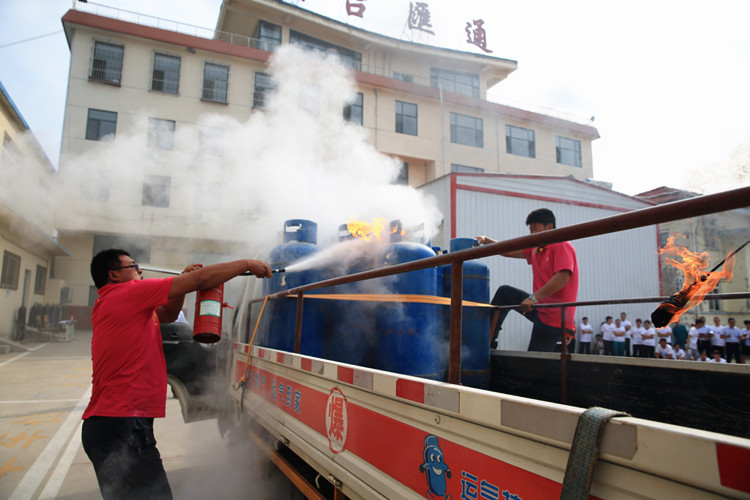 干粉灭火器灭车载钢瓶火项目就是要求驾驶人员迅速下车扑灭从钢瓶中喷出的火焰。时间稍纵即逝,每慢一秒就会增加一丝危险,所以必须要求两名驾驶员有超高的警觉性和反应能力。只有这样,才能及时扑救危险品运输车辆的初起火灾,保障运输安全。