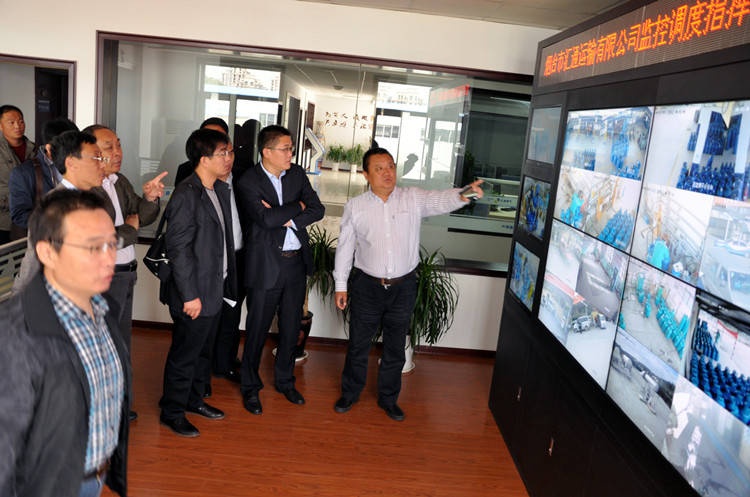 11日上午,马林副局长、崔俊杰总经理等相关参观调研人员一行,在我公司执行总经理徐立光、副总经理刘克的陪同下,参观了公司品牌运营话务中心、监控调度指挥中心、灌装区、储罐区等。