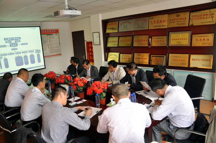 19日下午,在结束公司场站、服务部等实地调研后,于兴良等一行9人来到公司总部,在徐立光执行总经理的介绍下,了解了公司过去的发展历程和未来的发展方向,并从多个角度分析了双方的共性和差异性。